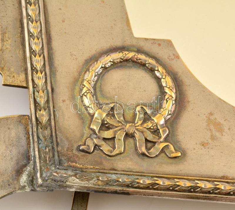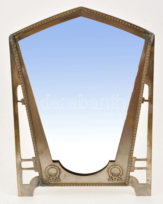 Leírás: cca 1900 Argentor asztali tükör, ezüstözött alpakka, jelzett, pótolt üveggel, javított, m:50×35 cm