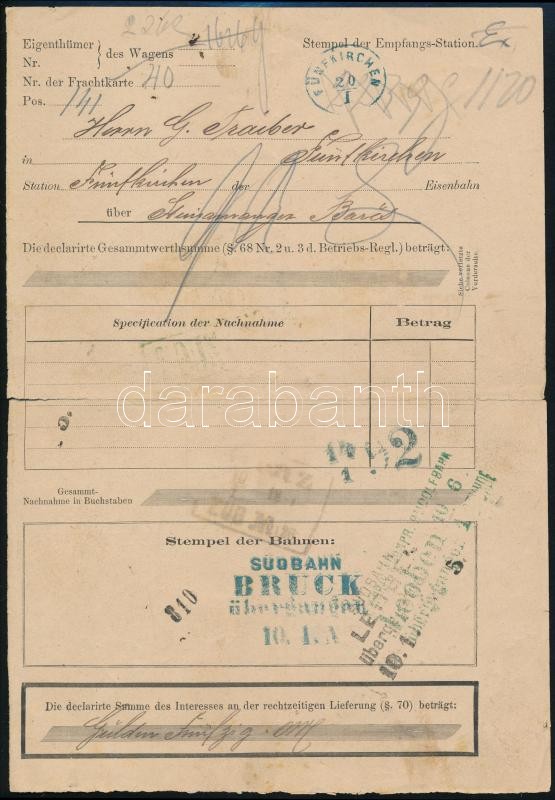 Leírás: Német nyelvű vasúti szállítólevél