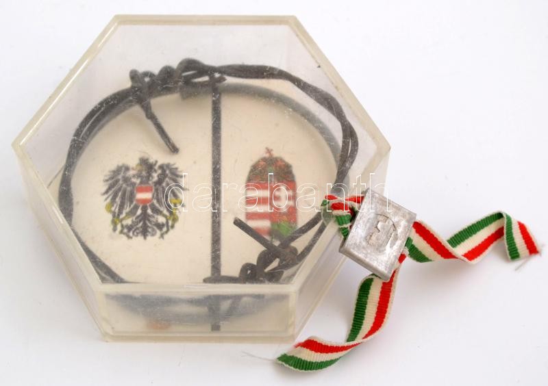 Leírás: cca 1989 A vasfüggönyből készített drótkoszorú, plombált, díszdobozban