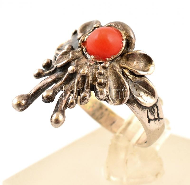Leírás: Ezüst(Ag) gyűrű, korall díszítéssel, jelzett, méret: 52, bruttó: 3,1 g