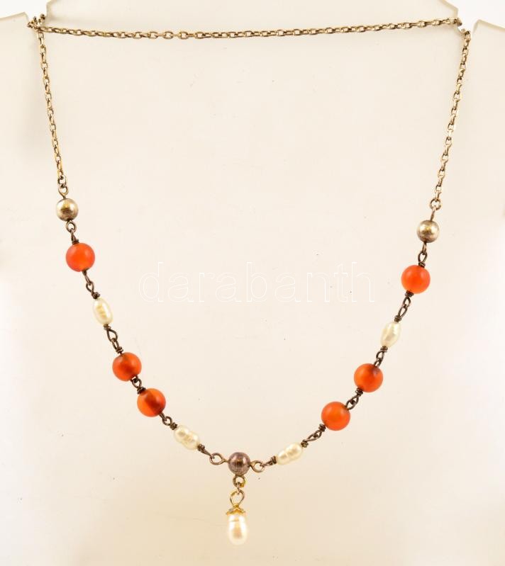 Leírás: Ezüst(Ag) nyaklánc, gyöngyökkel, jelzett, h: 54 cm, bruttó: 4,5 g