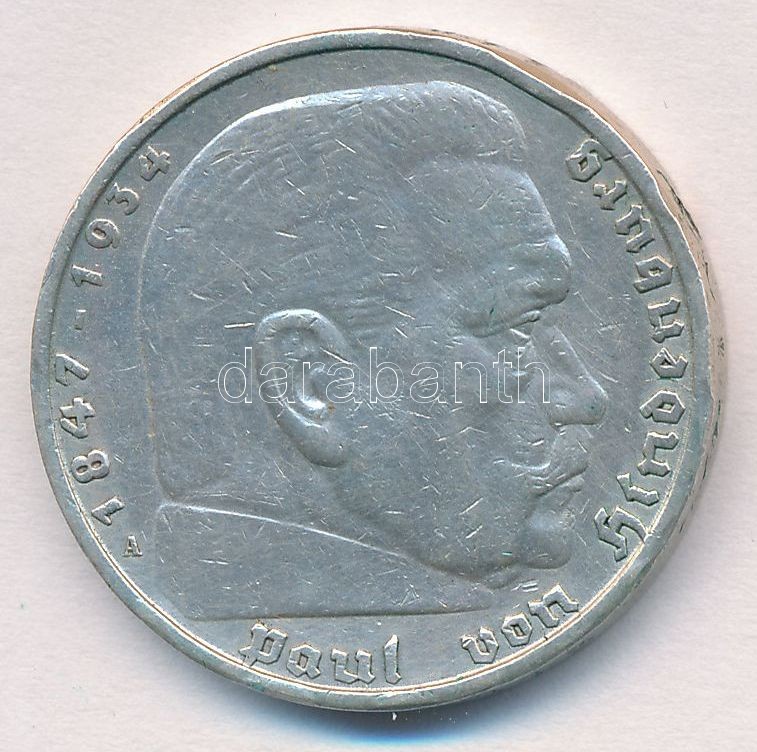 German Third Re... https://www.darabanth.com/hu/348-Gyorsarveres/348.0/Numizmatika/Kulfoldi-fem-es-ezustpenzek~2000013/Nemet-Harmadik-Birodalom-1936A-5M-Ag-Hindenburg-T2-German-Third-Reich-1936A-5-Mark-Ag-Hindenbu~II1979847