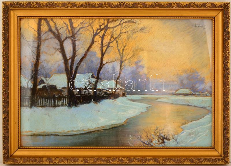 Leírás: Meilinger Dezső (1892-1960): Téli fények. Pasztell, papír- karton, jelzett, üvegezett keretben, 40×60 cm
