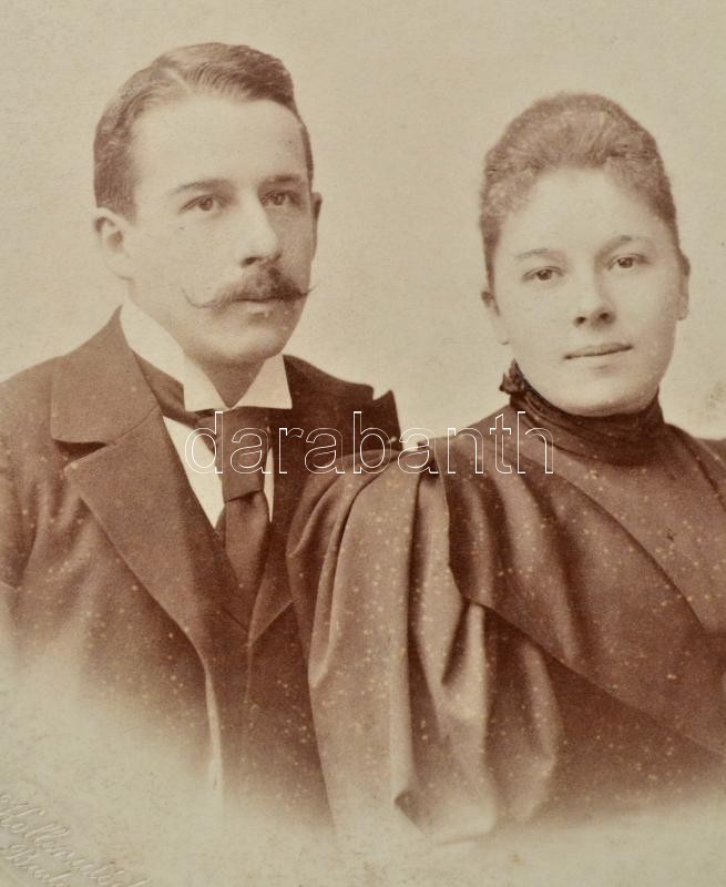 1895 Kunz József (1872-1923) mérnök és Kunz Jenny (?-?) keményhátú fotója. Dr. Kuncz Jenő (1844-1926) ügyvéd, jogfilozófus, szociológus, közgazdász fia. Bp., Goszleth István műterméből, a hátoldalán feliratozva, 20x10 cm