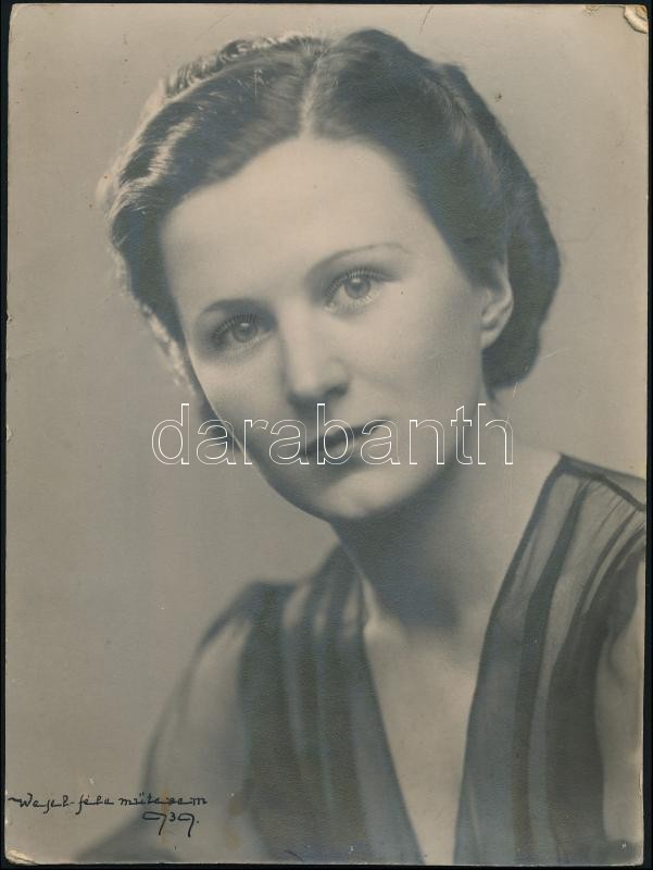 1939 Hölgyportré Wejel-féle műteremből, 24×18 cm https://www.darabanth.com/hu/349-Gyorsarveres/349.0/Fotomuveszet/Foto~500020/1939-Holgyportre-Wejel-fele-muterembol-24C39718-cm~II1985049