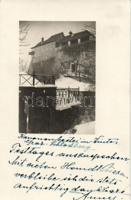 Graz, Schlossberg / Bastion castle, winter, photo https://www.darabanth.com/hu/349-Gyorsarveres/349.0/Kepeslapok/Ausztria~2000016/Graz-Schlossberg-Bastion-castle-winter-photo~II832843