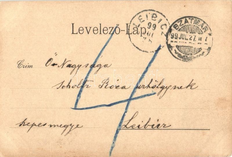 1899 Szatmárnémeti, Szatmár, Satu Mare; Kir. katolikus gimnázium, Kölcsey szobor, Református gimnázium. Kiadja Lövy M. / Catholic high school, statue, Calvinist high school. Art Nouveau, floral (EK)