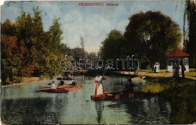 Leírás: Félixfürdő, Baile Felix; Halastó, csónakázók. Kiadja Engel József / fishpond, rowing boats (EM)