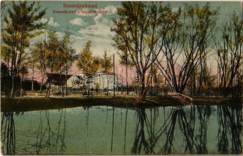Szatmárnémeti, Szatmár, Satu Mare; Kossuth kert a faipari iskolával / park, woodworking school + 1940 Szatmárnémeti visszatért So. Stpl. (ragasztónyom / glue marks)