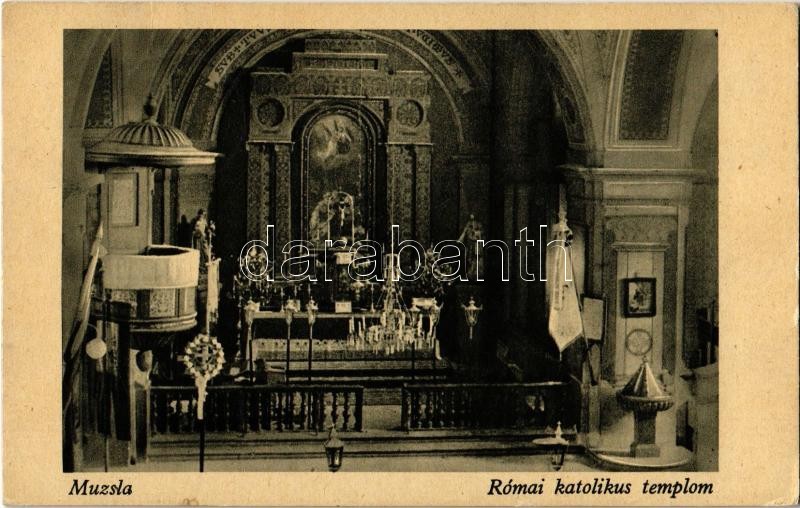 Muzsla, Muzla; Római katolikus templom, belső / church interior https://www.darabanth.com/hu/349-Gyorsarveres/349.0/Kepeslapok/Felvidek~2000007/Muzsla-Muzla-Romai-katolikus-templom-belso-church-interior~II1987309