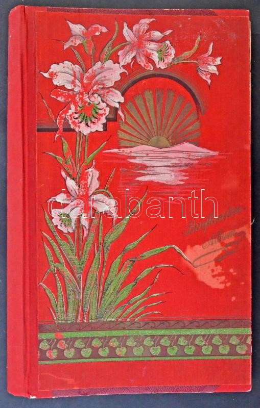 Régi nagy alakú szecessziós képeslapalbum 480 férőhellyel, kis szakadásokkal / "Briefkaarten Album" Big-sized Art Nouveau postcard album for 480 postcards with small tears (24 cm x 41 cm)