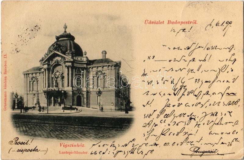 1899 Budapest XIII. Vígszínház. Kiadja Grassmann (kis szakadás / smal... https://www.darabanth.com/hu/349-Gyorsarveres/349.0/Kepeslapok/Magyarorszag~2000005/1899-Budapest-XIII-Vigszinhaz-Kiadja-Grassmann-kis-szakadas-small-tear~II1985858