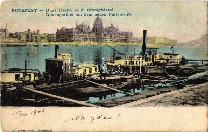 1906 Budapest V. Duna, hajóállomás, gőzhajó, Új Országház, Parlament. ... https://www.darabanth.com/hu/349-Gyorsarveres/349.0/Kepeslapok/Magyarorszag~2000005/1906-Budapest-V-Duna-hajoallomas-gozhajo-Uj-Orszaghaz-Parlament-Ganz-Antal-44-fl~II1986031