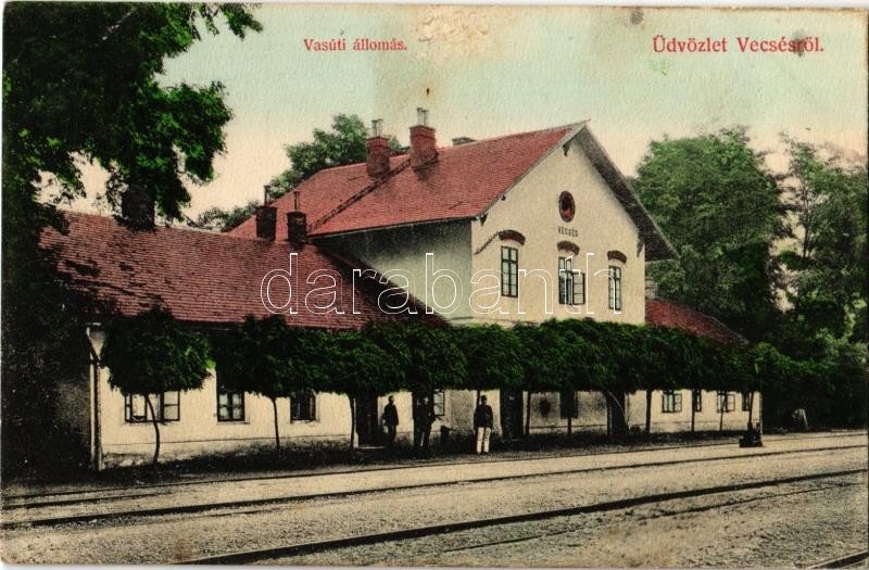 1907 Vecsés, Vasútállomás, vasutasok. Kiadja Herbacsek H. és Fia (fl) https://www.darabanth.com/hu/349-Gyorsarveres/349.0/Kepeslapok/Magyarorszag~2000005/1907-Vecses-Vasutallomas-vasutasok-Kiadja-Herbacsek-H-es-Fia-fl~II1981909
