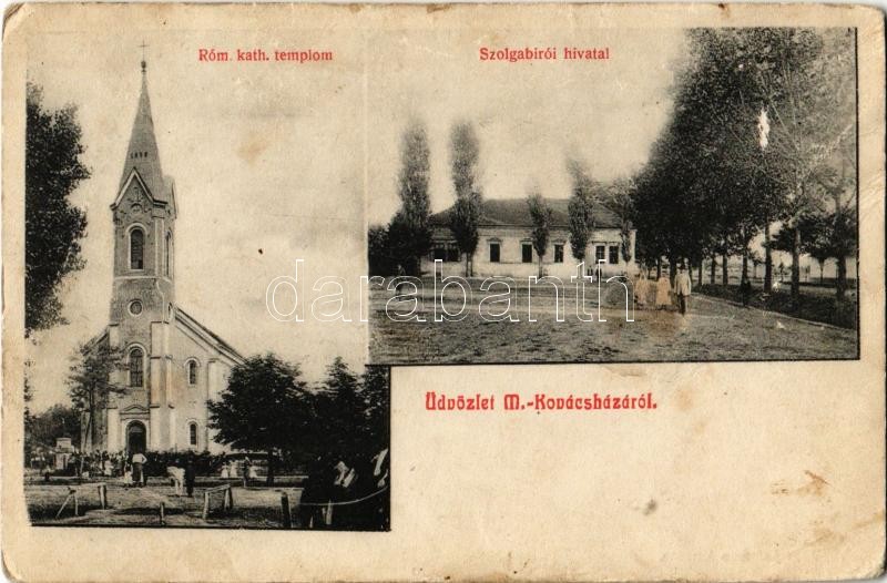 Leírás: 1913 Mezőkovácsháza, Római katolikus templom, Szolgabírói hivatal. Kiadja Roth Salamon (fa)