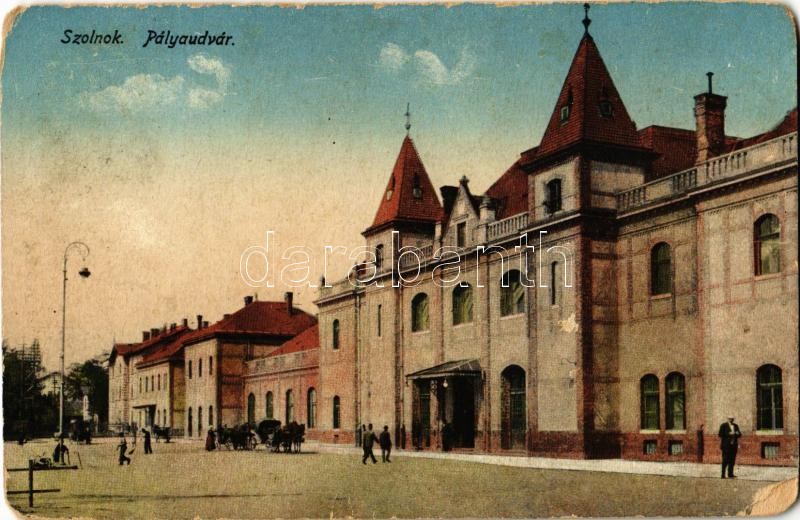 1915 Szolnok, Pályaudvar, vasútállomás (kopott sarkak / worn corners) https://www.darabanth.com/hu/349-Gyorsarveres/349.0/Kepeslapok/Magyarorszag~2000005/1915-Szolnok-Palyaudvar-vasutallomas-kopott-sarkak-worn-corners~II1986878