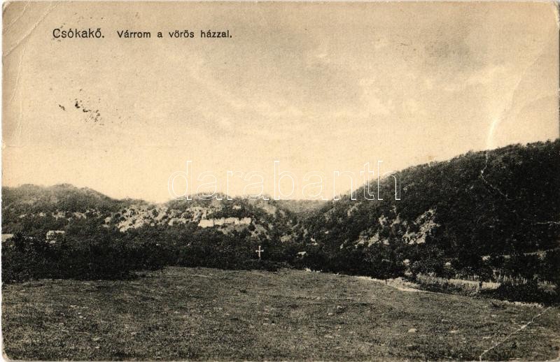 1933 Csókakő, várrom a vörös házzal (fa) https://www.darabanth.com/hu/349-Gyorsarveres/349.0/Kepeslapok/Magyarorszag~2000005/1933-Csokako-varrom-a-voros-hazzal-fa~II1982362