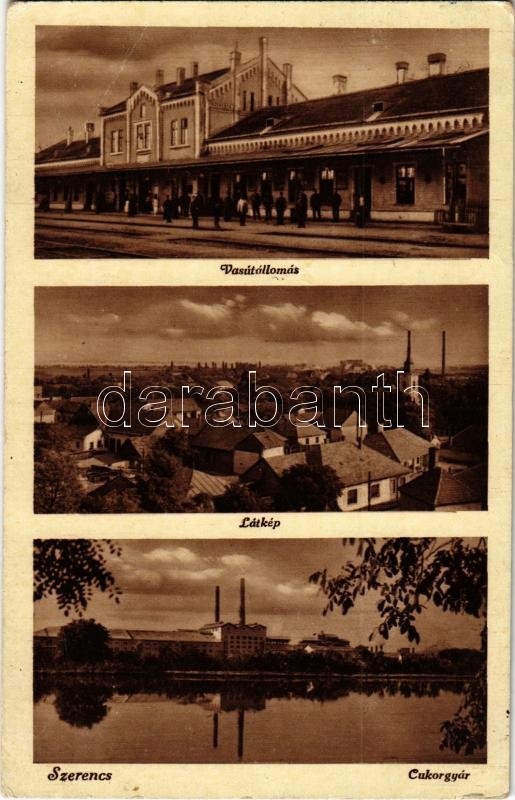 Leírás: 1944 Szerencs, Vasútállomás, látkép, Cukorgyár (EB)