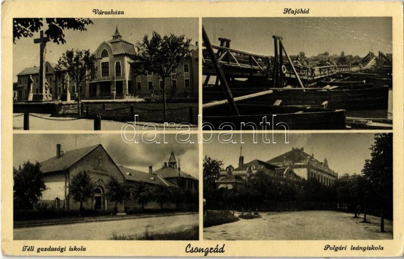 Csongrád, Városháza, Hajóhíd, Téli gazdasági iskola, Polgári leányisko... https://www.darabanth.com/hu/349-Gyorsarveres/349.0/Kepeslapok/Magyarorszag~2000005/Csongrad-Varoshaza-Hajohid-Teli-gazdasagi-iskola-Polgari-leanyiskola-EK~II1986201