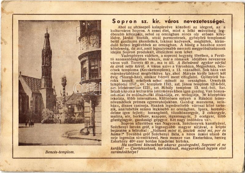 Leírás: Sopron, Bencés templom, Szentháromság szobor. Kiadja Farkasfalvi Kornél tanár (apró lyuk / pinhole)