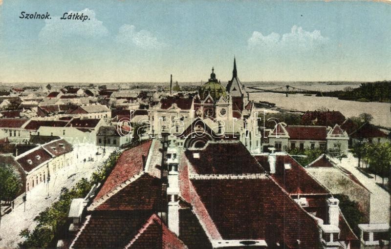 Szolnok, látkép zsinagógával. Judaica https://www.darabanth.com/hu/349-Gyorsarveres/349.0/Kepeslapok/Magyarorszag~2000005/Szolnok-latkep-zsinagogaval-Judaica~II1749911