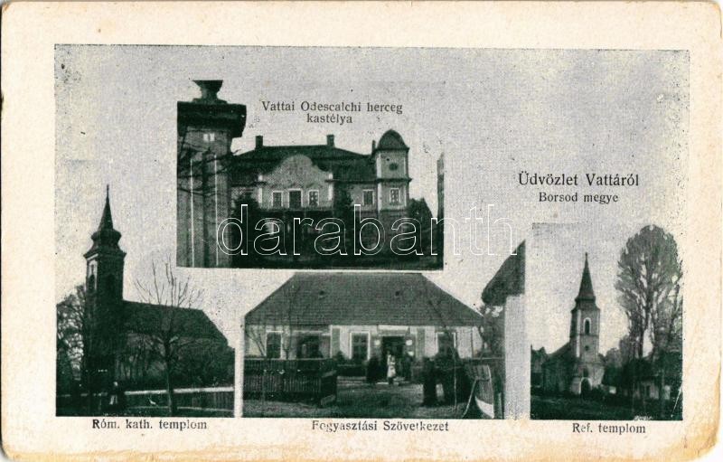 Vatta, Odescalchi herceg kastélya, Római katolikus és református templ... https://www.darabanth.com/hu/349-Gyorsarveres/349.0/Kepeslapok/Magyarorszag~2000005/Vatta-Odescalchi-herceg-kastelya-Romai-katolikus-es-reformatus-templom-Fogyasztasi-szovetke~II1967555