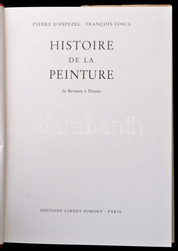 Pierre D'Espezel-Francois Fosca: Histoire de la peinture de Byzance á Picasso. Paris, 1967, Aimery Somogy. Kiadói egészvászon kötés, kiadói kissé szakadt papír védőborítóval, jó állapotban.