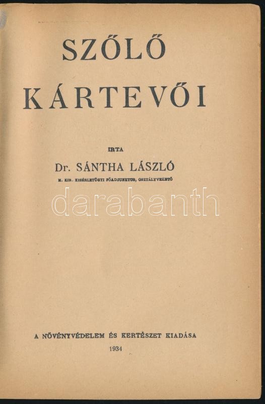 Növényvédelem és kertészet könyvtára 2 kötete (III.,VI.) szőlészet témában: Dr. Sántha László: Szőlő kártevői.;