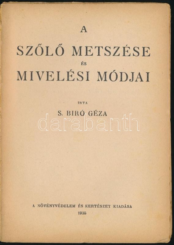 S. Bíró Géza: Szőlő metszése és mívelési módjai.;
