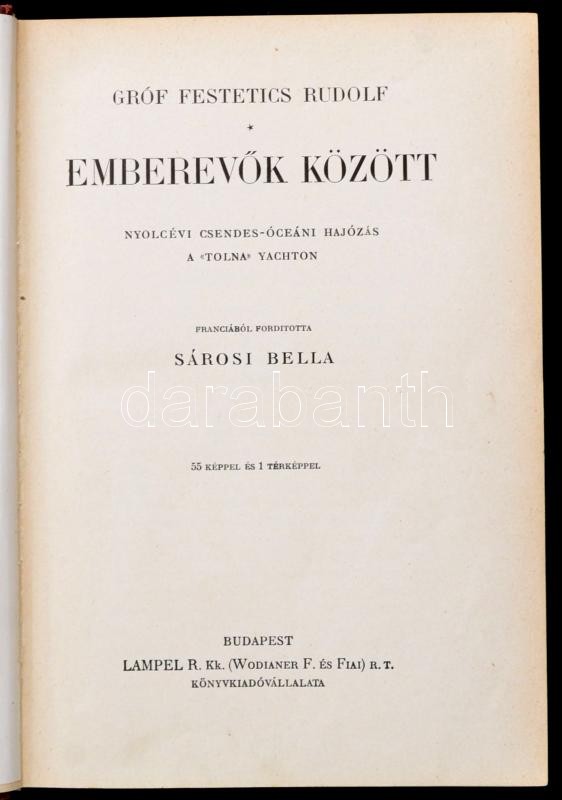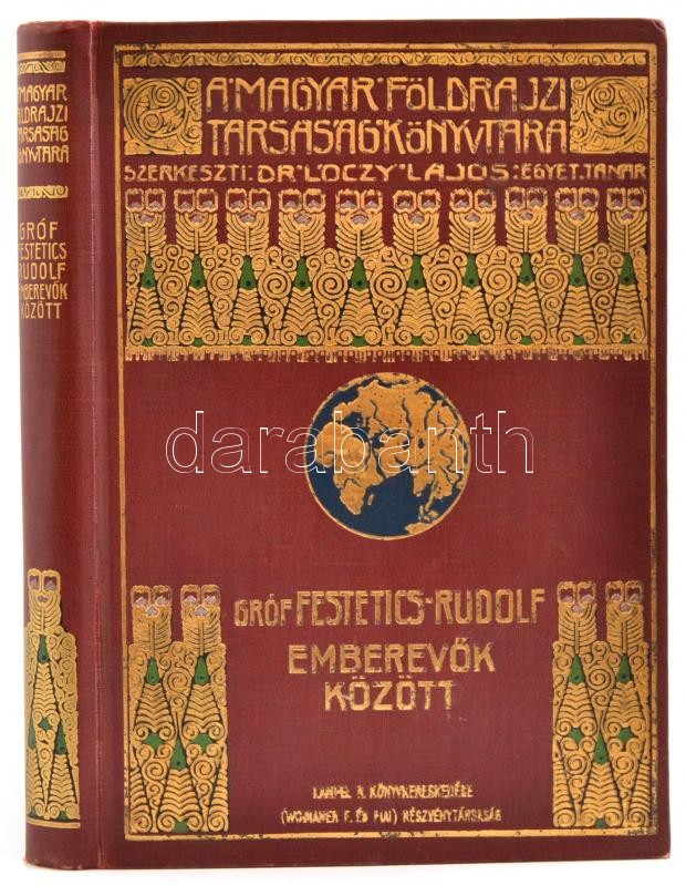 Gróf Festetics Rudolf: EmberevÅ‘k között. FordÃtotta: Sárosi Bella. Magyar Földrajzi Társaság Könyvtára. Budapest, é. n., Lampel R. (Wodianer F. és Fiai), 1 t.+4+278+1 p.+ 1 kihajtható térkép. Az oldalszámozáson belül szövegközti és egészoldalas fekete-fehér fotókkal illusztrált. Kiadói aranyozott egészvászon kötés, kissé laza fűzéssel, apró kopásnyomokkal, egyébként jó állapotban.