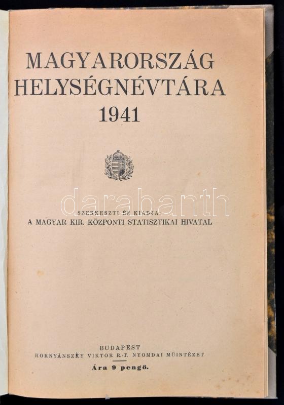 Magyarország helységnévtára 1941. Bp., 1941, Hornyánszky. Későbbi félv... https://www.darabanth.com/hu/349-Gyorsarveres/349.0/Konyvek/Konyvek-Utazas-helytortenet~1500001/Magyarorszag-helysegnevtara-1941-Bp-1941-Hornyanszky-Kesobbi-felvaszon-kotesben-jo~II1981779