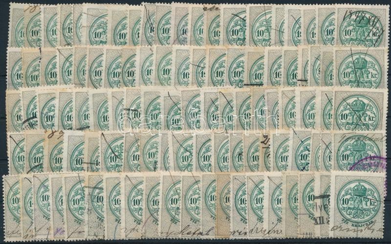 Leírás: 1891 100 db 10kr okmánybélyeg, eredeti hagyatékból