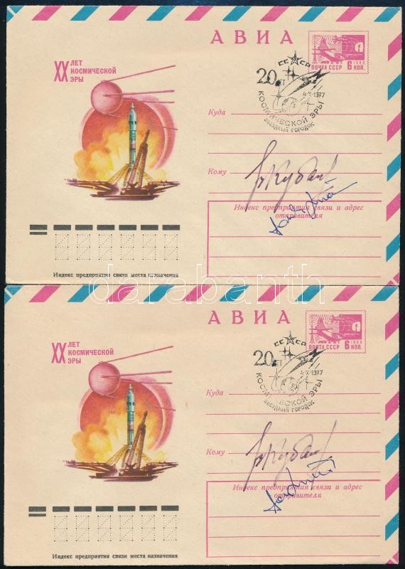 Leírás: Farkas Bertalan (1949- ) magyar és Valerij Kubaszov (1935-2014) szovjet űrhajós aláírása emlékborítékon
