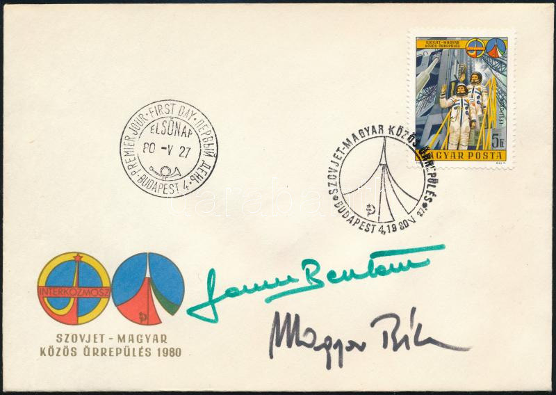 Farkas Bertalan(1949-) és Magyari Béla(1949-) űrhajósok aláírása Inter... https://www.darabanth.com/hu/349-Gyorsarveres/349.0/Mutargy-papirregiseg-egyeb/Alairas~500019/Farkas-Bertalan1949-es-Magyari-Bela1949-urhajosok-alairasa-Interkozmosz-FDC-n~II1414415