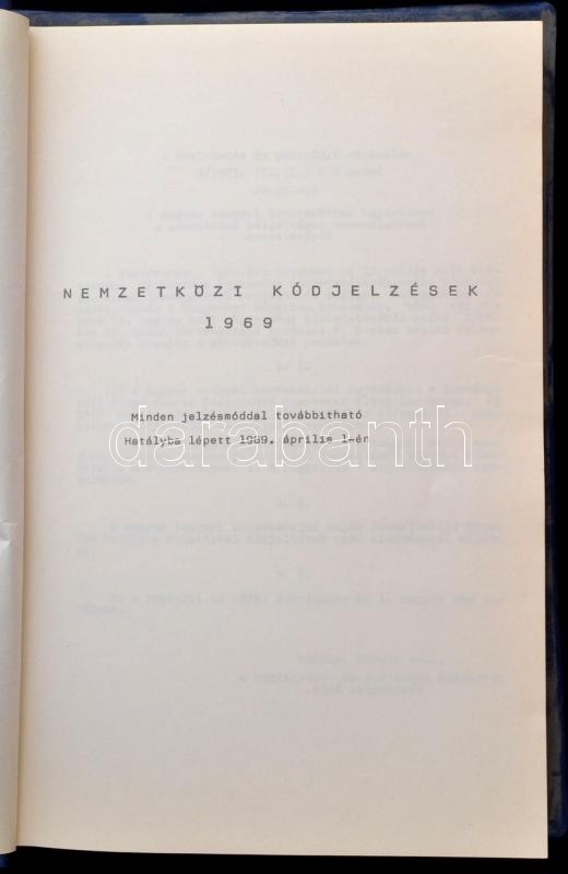 Leírás: Nemzetközi kódjelzések 1969. Nylon-kötésben, 311 p.+4 t.