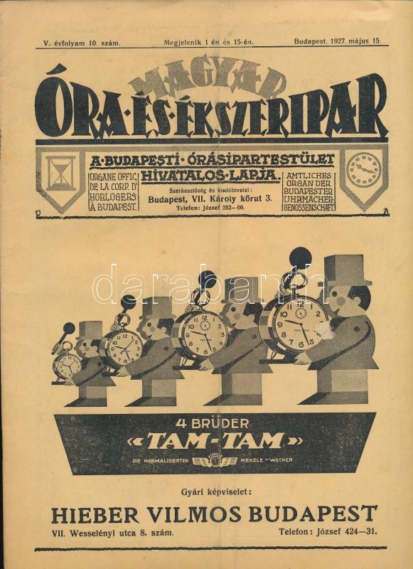1927 Magyar Óra-, és Ékszeripar. V. évf. 10. sz. 1927. május 15. Szerk... https://www.darabanth.com/hu/349-Gyorsarveres/349.0/Mutargy-papirregiseg-egyeb/Nyomtatvanyok~500030/1927-Magyar-Ora-es-Ekszeripar-V-evf-10-sz-1927-majus-15-Szerk-Schwarz-Zsigmond-PapC3~II1984841