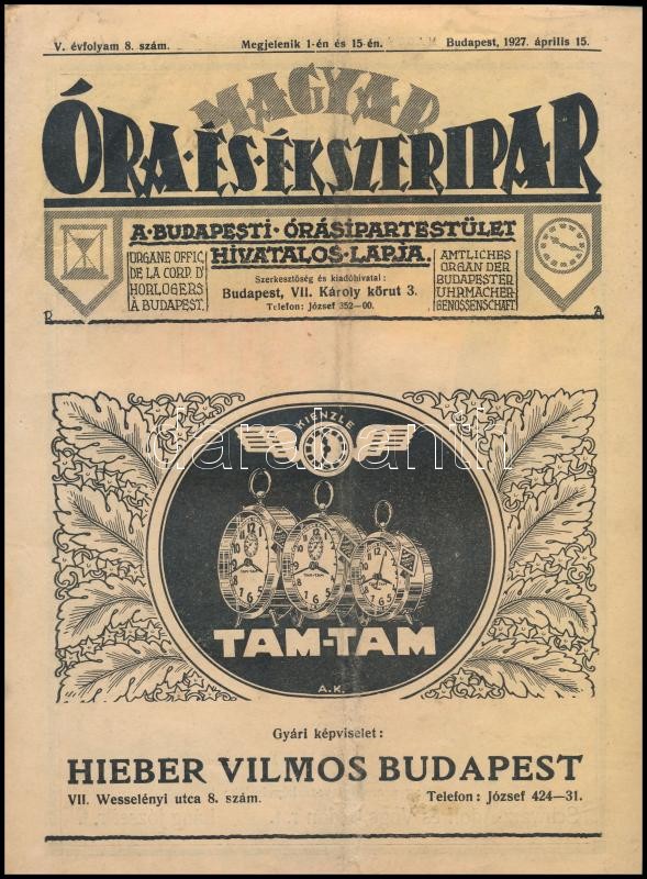 1927 Magyar Óra-, és Ékszeripar. V. évf. 8. sz. 1927. ápr. 15. Szerk.:... https://www.darabanth.com/hu/349-Gyorsarveres/349.0/Mutargy-papirregiseg-egyeb/Nyomtatvanyok~500030/1927-Magyar-Ora-es-Ekszeripar-V-evf-8-sz-1927-apr-15-Szerk-Schwarz-Zsigmond-Papir~II1984836