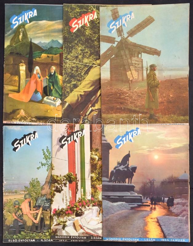 1943-1944 Szikra folyóirat 6 száma, I. évf. 4.,8-10. sz. és II. évf. 1... https://www.darabanth.com/hu/349-Gyorsarveres/349.0/Mutargy-papirregiseg-egyeb/Nyomtatvanyok~500030/1943-1944-Szikra-folyoirat-6-szama-I-evf-4-8-10-sz-es-II-evf-1-2-sz-Gazdag-kepanyagg~II1983110