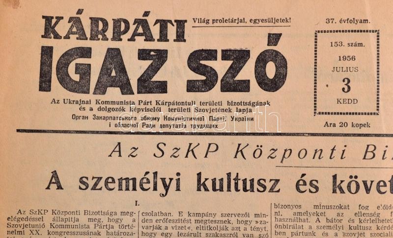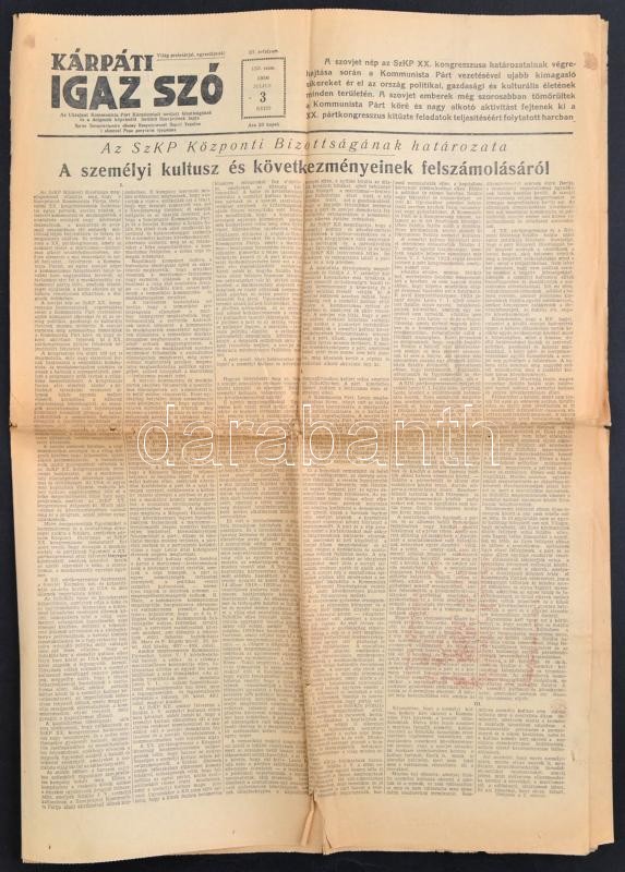 1956 A Kárpáti Igaz Szó c. újságnak az SZKP XX. kongresszusáról, a sze... https://www.darabanth.com/hu/349-Gyorsarveres/349.0/Mutargy-papirregiseg-egyeb/Nyomtatvanyok~500030/1956-A-Karpati-Igaz-Szo-c-ujsagnak-az-SZKP-XX-kongresszusarol-a-szemelyi-kultusz-vegerC5~II1972446