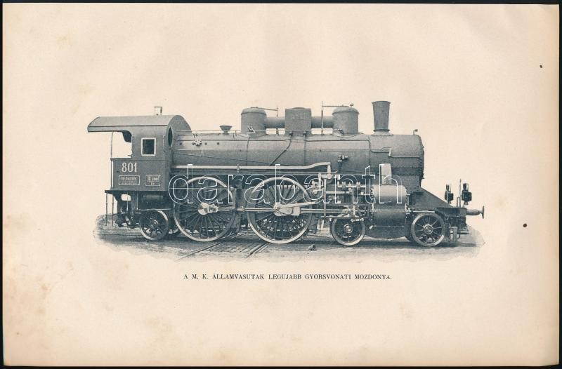 Leírás: A m. k. államvasutak legújabb gyorsvonati mozdonya, nyomat, feliratozva, 18,5×28 cm