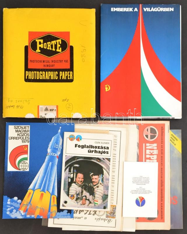 Leírás: Vegyes űrhajós tétel, fotók, újságok, könyv, stb.