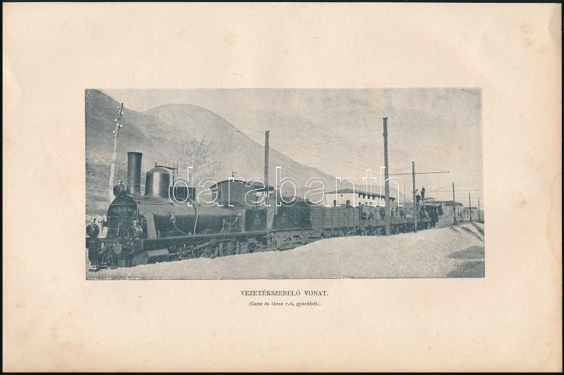 Leírás: Vezetékszerelő vonat Ganz és társa rt. gyárából, nyomat, feliratozva, 18,5×28 cm