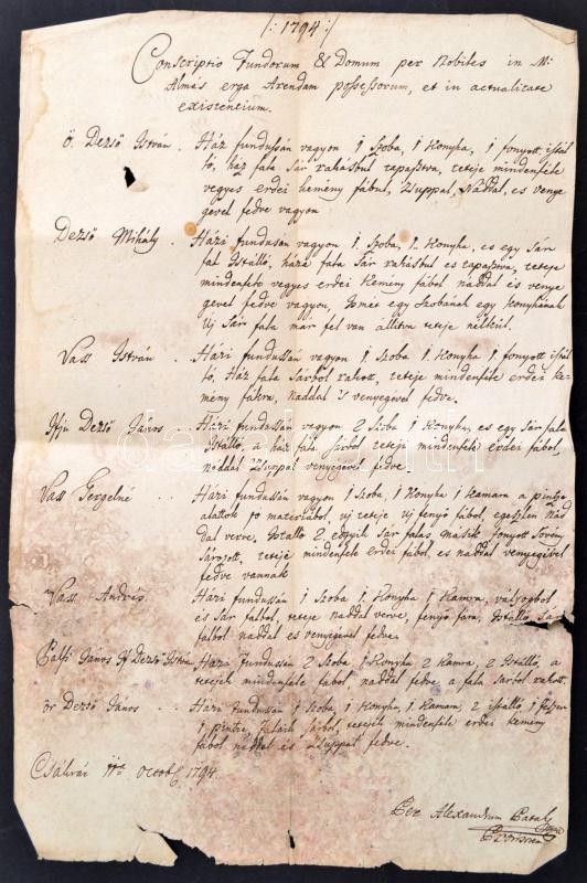 Leírás: 1794, 96 A magyaralmási csárda inventáriuma és a földek inventáriuma