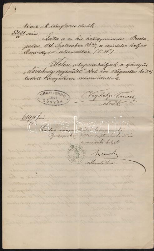 1888 Gönyű: Tevékeny egyesület alapszabályai. 8p .Kézirat.aláírásokkal... https://www.darabanth.com/hu/349-Gyorsarveres/349.0/Mutargy-papirregiseg-egyeb/Okmanyok~500017/1888-Gonyu-Tevekeny-egyesulet-alapszabalyai-8p-Keziratalairasokkal-pecsetekkel~II1922354