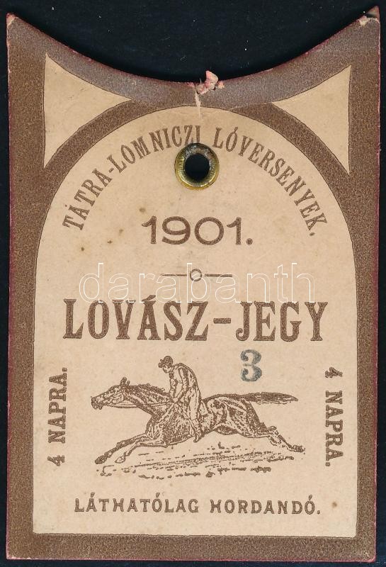 Leírás: 1903 Tátralomnici Lóversenyek, lovász-jegye, 1901, 7x5 cm