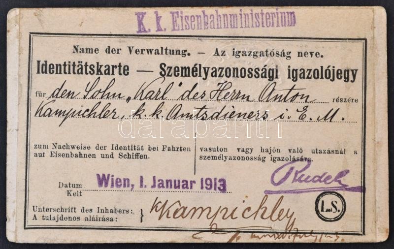 Leírás: 1912 Bécs, Fényképes személyazonossági igazolójegy(Identitätskarte)