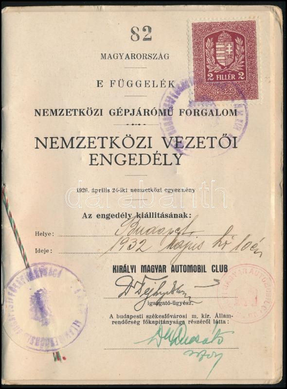 1932 A Királyi Magyar Automobil Club fényképes nemzetközi vezetői enge... https://www.darabanth.com/hu/349-Gyorsarveres/349.0/Mutargy-papirregiseg-egyeb/Okmanyok~500017/1932-A-Kiralyi-Magyar-Automobil-Club-fenykepes-nemzetkozi-vezetoi-engedelye~II1935770