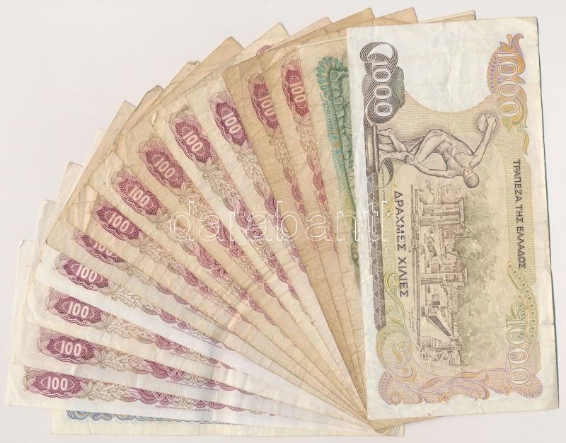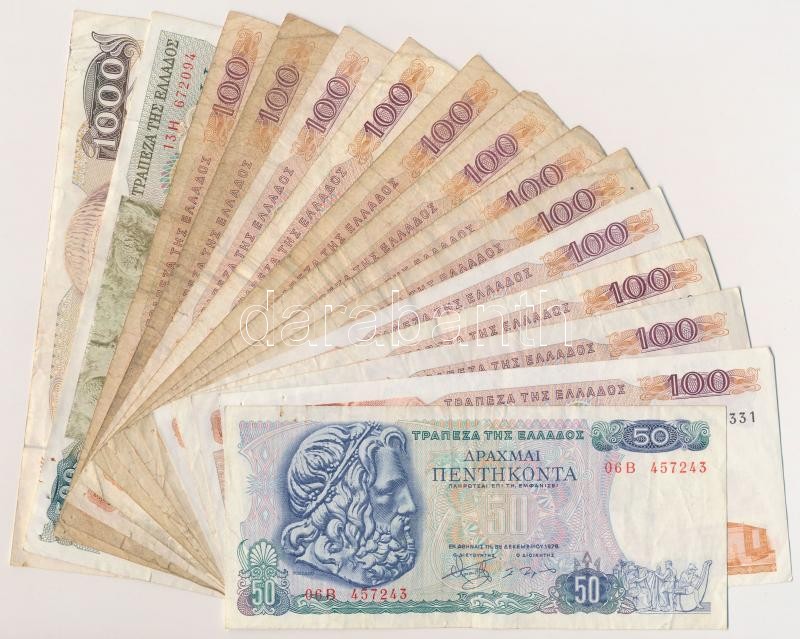 Leírás: Görögország 1968. 500D (2x) + 1978. 50D + 100D (12x) + 1987. 1000D T:III,III- tűnyom