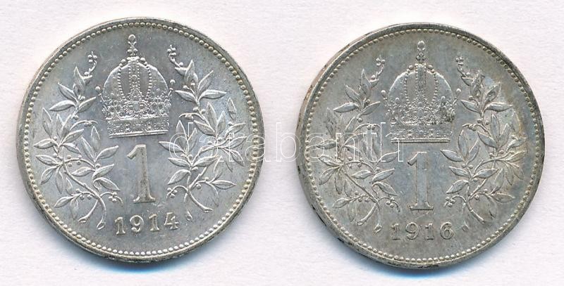 Ausztria 1914-1916. 1K Ag "Ferenc József" (2xklf) T:1-