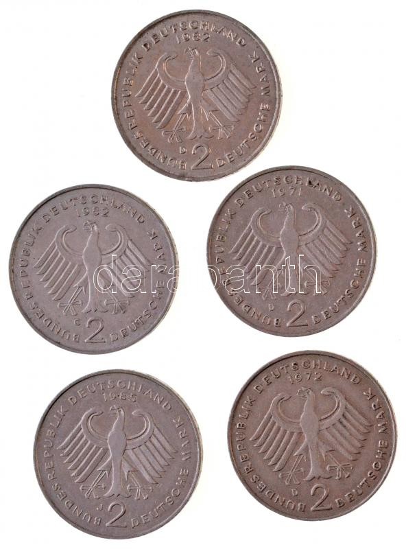 FRG 1971-1985. 2 Mark (5xdiff) C:XF https://www.darabanth.com/hu/349-Gyorsarveres/349.0/Numizmatika/Kulfoldi-fem-es-ezustpenzek~1000012/NSZK-1971-1985-2M-5xklf-T2-FRG-1971-1985-2-Mark-5xdiff-CXF~II1959907